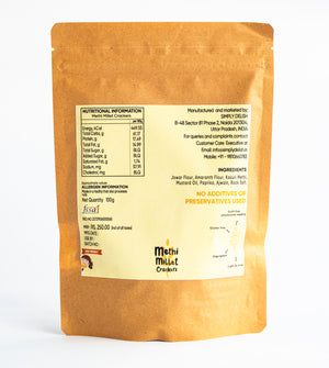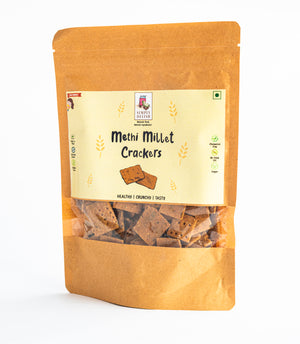 Savoury, Earthy, Uniquely Indian: These saltines give off an impressive Methi flavor and need to be tasted at their best. Replace mathri with this tasty, baked healthier alternative. The attractive flavor of methi (fenugreek) combined with the healthy benefits of millets makes these crispies a tribute to the Indian classic, mathri. Great for people who want to be left with a background flavor from the Indian spices and who love snacks.