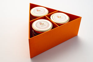 This Triangular Gift Box is one of the high-end multi-color festive gift boxes for all kinds of occasions. It's very well-packaged with delectable snacks in varieties including Chilli Lemon Cashew, BBQ Almonds, and Honey Roast Almonds. Any palate is going to be very pleased by offering this taste variety gift box in a gorgeously designed pattern. Gifting to anyone, but more aptly self- treat of this kind has brought into your life.